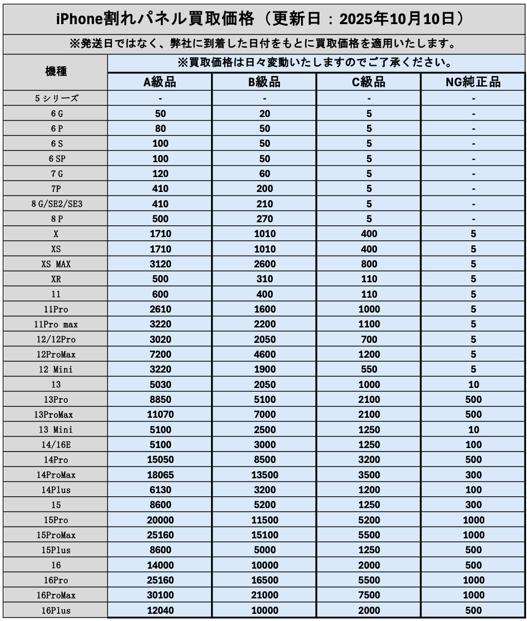 割れパネルを送る際には、必ず⏬買取明細表.PDF(←こちらリンクとなります)を添付してください。EXCELデータ⏬